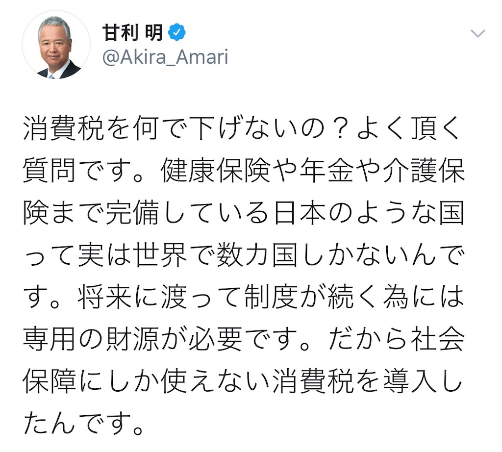 ですからこのツイートみたいな"消費税は社会保障の財源"というのはウソです。控えめに言うと"勘違い"です。
